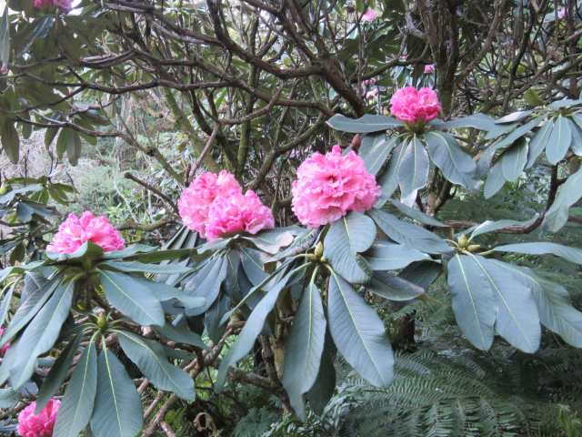 Rhododendron protistum var. giganteum ‘Pukeiti – one of the big leafed varieties that flower early. We also have subtropical vireya rhododendrons in bloom.