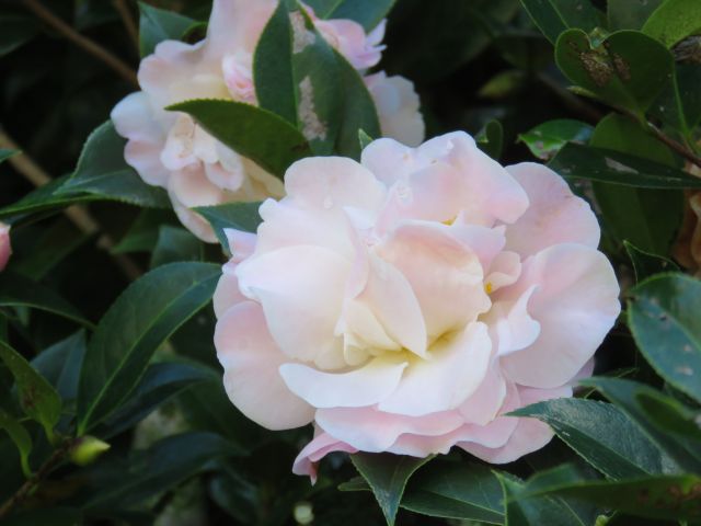 It took me ages to get ‘Hakuhan-kujaku’, the peacock camellia, to this state. I took out at least 60% of it and it looks a whole lot better for the time spent. Shapely, not hacked or massacred.
