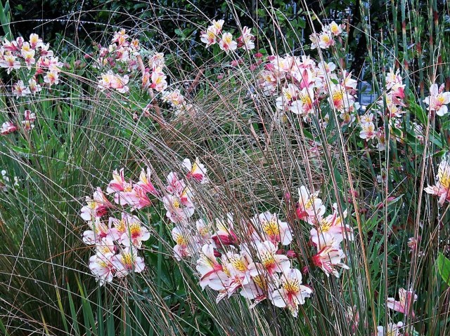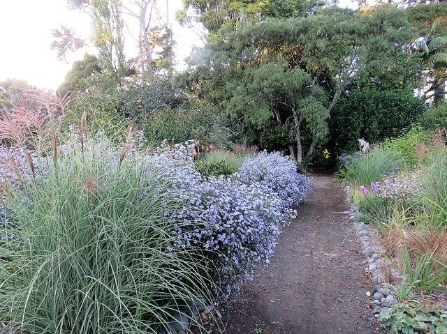 Moraea polystachya, an autumn form of the peacock iris, seeds around enthusiastically but harmlessly and rewards us by popping up randomly – on the edge of the drive in this photo – and having one of the longest seasons in flower of any of the autumn bulbs because it keeps opening a generous succession of buds.