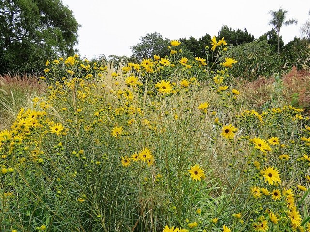 The Jerusalem artichoke is also a member of the helianthus family but it does not justify its place as an ornamental plant. Not enough flowers, I am afraid, but an abundance of tubers which I dare not eat. While tasty, no matter how hard I try, I can not find ways to prepare it that improve its digestibility without the unfortunate side effects. Its name as fartichoke is fully justified.
