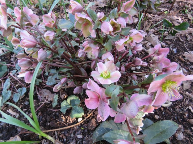 I don’t know how many H. niger we have raised and planted out. It is the pretty, low-growing white with the upward-facing flowers held just on the foliage. It is a one season wonder for us. I was delighted with ‘Angel Glow’ but after three very pretty seasons, it has all but disappeared this year.
