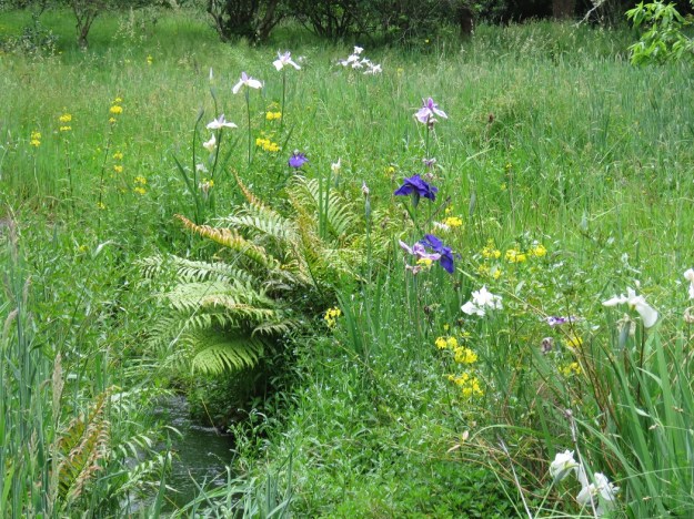At the risk of repeating myself – but we all know that gardening is a seasonal activity that is, by definition, repetitive – the meadow below is bringing me great joy as the Higo irises all come into bloom, interspersed with the Primula helodoxa that has been at its peak for a full month now. What more can I say?