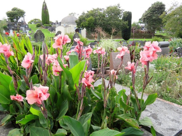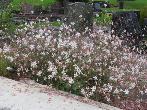 I returned to the main cemetery of New Plymouth yesterday. As the season advances inexorably into what is already showing signs of late summer, I wanted to see what was in bloom. “Was She who is the Phantom of the Graveyard there?” Mark asked. He had a personalised tour last month from the bright and bubbly person who wishes to remain anonymous and unacknowledged but who has beavered away there for many years now. These days more volunteers have come forward to join her and it is a lovely place to visit.