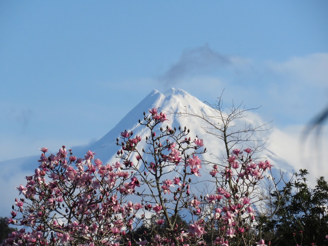 The magnolias are undeterred. Matariki[i] is underway and the plants agree that this is the time to celebrate the start of a new year.  It will be another few weeks before the Magnolia campbellii in our park will be in full bloom but my annual pastime of photographing the magnolia and te mounga[ii]  has started.