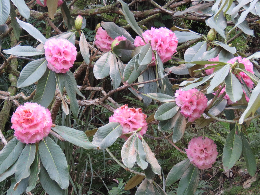 The big-leafed rhododendrons flower now, not at the beginning of November. This is Rhododendron protistum var. giganteum.