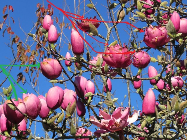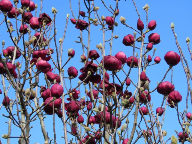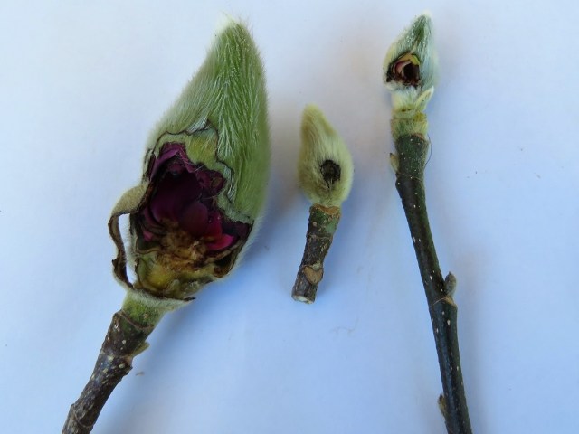 Magnolia buds that will never open to good blooms. Every one of them has had the centre nipped out of them.