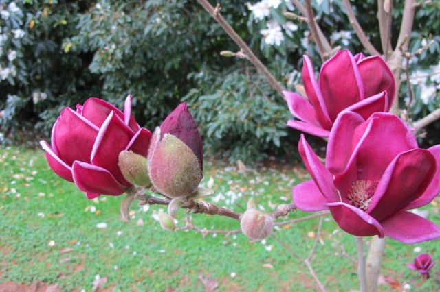 Magnolia Vulcan – the ragged flowers to the right will have been chewed by kereru