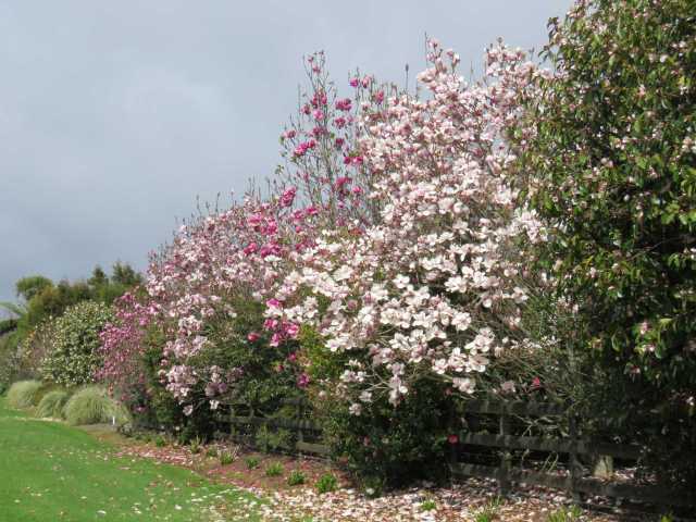 I see it was twelve years ago that I wrote about generous gardeners. Not those who readily share plants but those who plant up areas for other’s enjoyment. I remembered that article this week because of a beautiful stretch of roadside on the outskirts of our small town that I drive by almost every time I leave our property. It is a spectacular row of magnolias that goes from strength to strength every year. It edges grass paddocks where the owners graze a few stock.