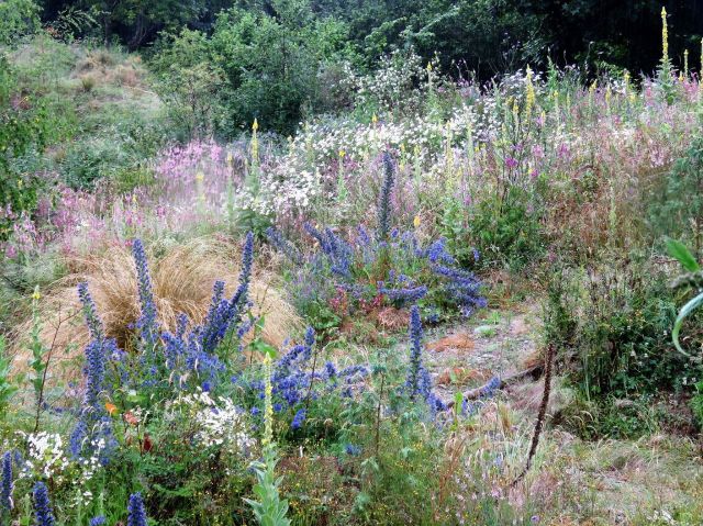 I was going to say that, to me, Knepp Castle looks like having its roots in Beth Chatto’s dry garden from the 1960s with strong elements of James Hitchmough’s Missouri meadow at Wisley from the mid 2000s, meeting Tom Stuart-Smith’s expansive perennial terraces, some modern European gardens and generous lashings of what Keith Wiley has created at Wildside – but all combined in a project started in 2020. I looked up their website and indeed the designers involved included Stuart-Smith and Hitchmough as well as Jekka McVicar and Mick Crawley whom I had not heard of but is apparently an emeritus professor of plant ecology at Imperial College in London. That is quite the team.
