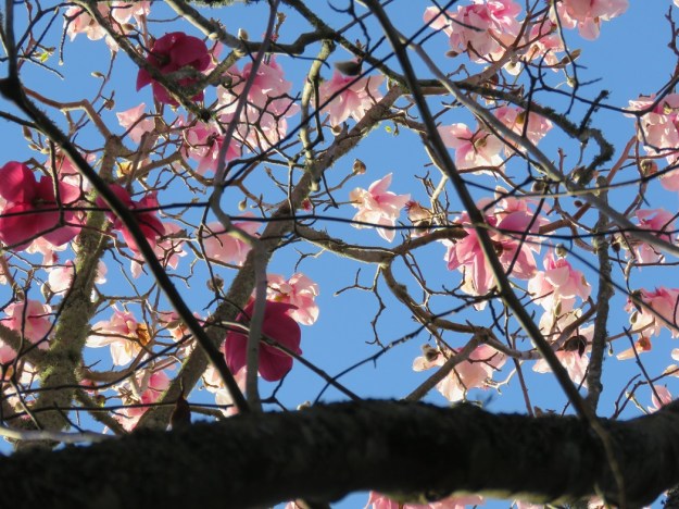 Or the promise of flowers. The morning sun is shining on magnolia buds (or sleeping bags for mice, as our children used to call the bud casings)