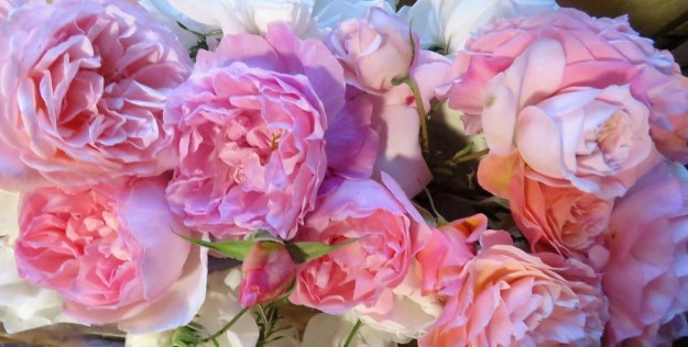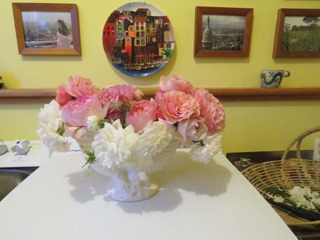 Is there anything lovelier than beautiful, soft, fragrant rose blooms? Not for me the stiff, hybrid tea types. I will leave those for others. But the David Austins are so deliciously voluptuous that I just want to bury my nose in all those scented petals. In a vase. And therein lies the rub.