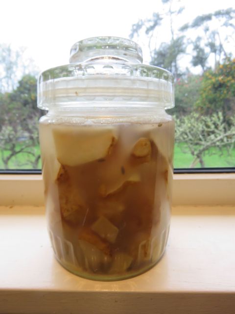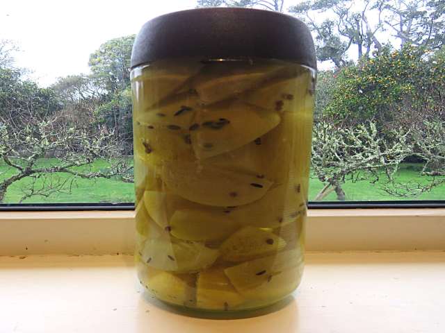 Salt also plays a role in fermenting foods. I have just completed a small jar of fermented Jerusalem artichokes and the reason to ferment this crop is that the process breaks down the inulin to a more easily digested form. It is the inulin that is responsible for this crop oft being referred to as fartichokes. Fermenting means that you can eat, sweet, crispy artichokes without the unpleasant after effects. I like the taste of artichokes and they are heavy croppers for minimal to no effort but my stomach did not like them at all. Hence the fermentation. I did a big jar last year but we didn’t eat them fast enough and they don’t store as well as salted lemons. When some questionable moulds formed, I threw out the rest but I think we will get through the smaller jar.