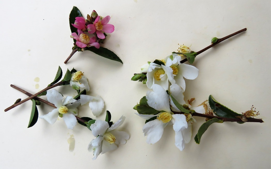 The problem with clipping is that it cuts every single outside leaf that then turns brown on the cut edge. This does not matter when the clipping is being done on plants with very small leaves and it is not generally a problem on the C. sasanqua cultivars which have a somewhat softer leaf. It matters a great deal if the clipping candidate has the tough, shiny, leathery leaves common to the C. japonica types. I drive past a clipped white C. japonica hedge from time to time and it simply looks awful when it has been freshly cut. I wonder if the owners went to buy the aforementioned ‘Setsugekka’ (which would have been much more successful) but the garden centre had sold out so they talked them into a white japonica instead? It was not a good choice. Keep your clippers away from C. japonica varieties is my advice; reach for secateurs instead and forget any ideas of tight-clipped shapes.