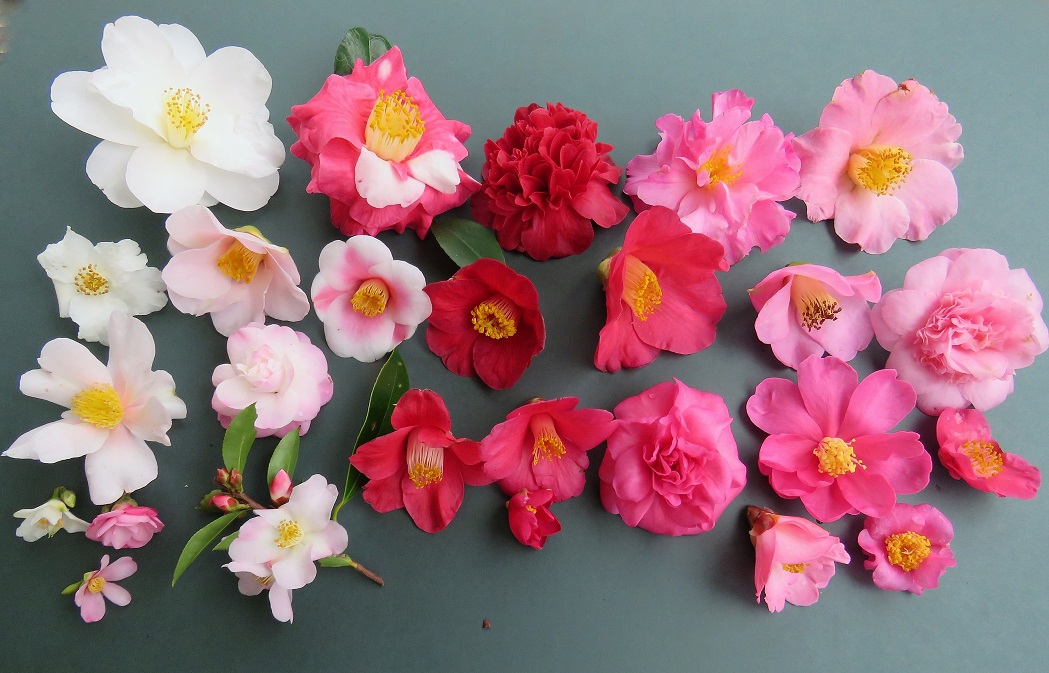 We have a large garden with many camellias used in a variety of situations. I have never counted them but it will be in the hundreds, not the tens. When Mark started plant breeding, he followed in the footsteps of his father and his uncle and chose camellias first. They are right at home in our climate so we have camellias as feature plants, background plants, hedges both informal and clipped, windbreaks and as a backbone plant repeated throughout the garden.