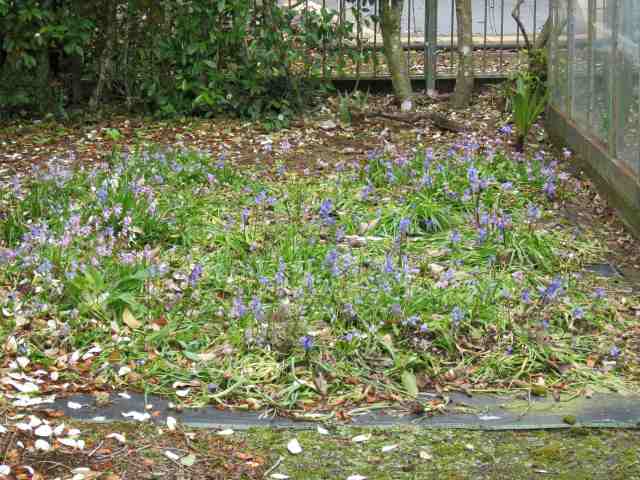 The romantic haze of blue of a drift of bluebells – how delightful. And yes, it is but only in the right place. I have written about bluebells down the years and we went to some trouble to establish drifts here. Ironically, back in 2007, I wrote: “The bluebell planting was a bit of triumph for Mark. He had been gently nurturing a patch in the vegetable garden to build numbers and came up with about 2000 this year. Now 2000 bluebells may sound a large amount to most people but his mission, he explained, was to try and get that 2000 to look more like 20 000. It takes a huge number to have much impact in a large area.”