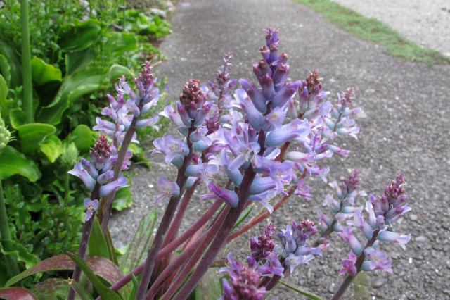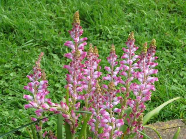 The lachenalias have proven more weather hardy for us. Now that the early ones have long gone, we are onto the late bloomers, particularly this rather striking pink and blue number and the white species L. contaminata.