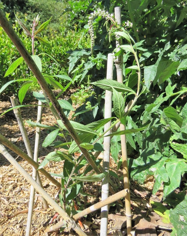Do not laugh at this poor little specimen of a veronicastrum. A lot of effort has gone in to getting it to this stage. The bamboo stakes were part of rabbit protection when it was even smaller.