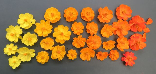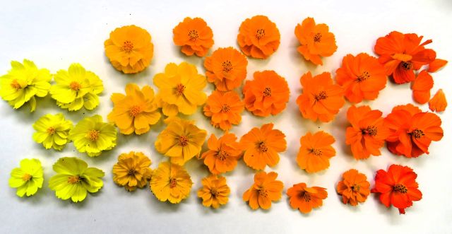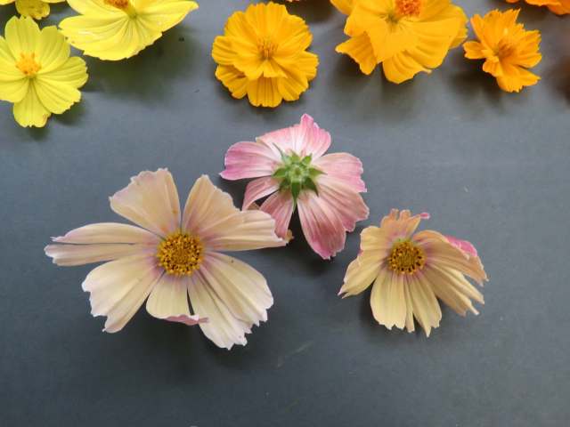 Most plants in the wild reproduce by seed and Nature is full of seedling variation. My cosmos are just a small example of Nature in action. When you buy packets of seed, you are trusting the supplier to have made selections from the best and most desirable seeding parents. When you save your own seed, always select from the best plant – be it garlic, tomatoes, annuals or anything else. Don’t make the mistake of saving seed from the smallest plant or fruit that you don’t want to eat. Careful seedling selection down the years is what gave us sweet corn instead of tough old maize, chunky orange carrots instead of very thin purple ones and a host of other plants.