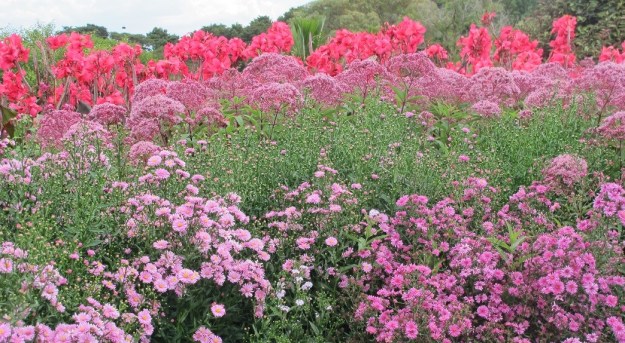 Auckland Regional Botanic Gardens also uses big plantings of cannas in their summer herbaceous displays. Some of these are better than others. The symphony in pink was, I thought, charming on the day. The garish stripes in primary colours, not so much.