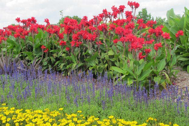 If you are going to grow them, my advice would be to plant them in blocks of a single colour for maximum effect. I did not realise until I looked them up to get their species name that they are edible. My cursory study of them indicated that it is the tubers you eat, not the flowers. They are Canna indica, not lilies at all, but that is probably no surprise. Their widespread natural habitat takes in large parts of South and Central America, stretching up into the southern states of USA.