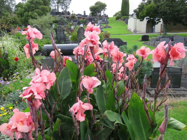 Cannas are a mainstay of the summer plantings at the Te Henui cemetery. Mercifully, Cemetery Sue who leads the team of volunteers who tend those gardens, has kept the colours separate.
