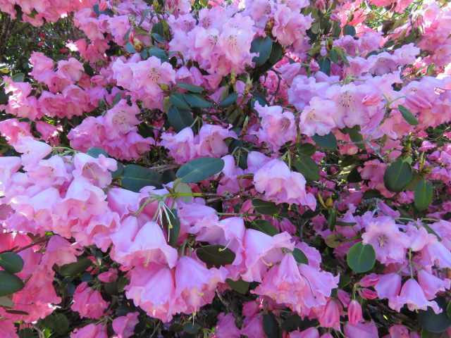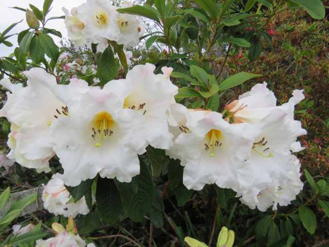 The third garden I went to was Kowhai Garden which has a remarkable collection of rhododendrons – over 900, I believe. It is not just rhododendrons but they are the stars at this time of the year. I entertained myself identifying those I knew, dredging my memory banks from the days when we had a nursery that specialised in the genus. Again, it is an example of how people cope with gardens that include a very steep slope, as much of this large garden has. What stood out for me were the rhododendrons that are thriving in a low maintenance environment – not only flowering well but also keeping good foliage and good plant form. Some are performing much better than others.