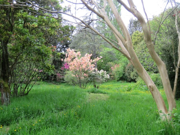 In self-defence, I say that our bold azaleas are mostly interspersed throughout the park, so surrounded by acres of verdant green rather than being planted en masse to dazzle the eyes. And they have been there quite a long time so endured the changing fashions of colour down the decades.