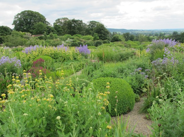 On our July visit, we were planning to rush down from Shropshire to catch the Wednesday opening at Broughton Grange – another private commission of his. We really wanted to visit in person because we have only seen it in photos and it features that Stuart-Smith trademark of clipped caterpillar hedges undulating through a parterre. It was the inspiration for our own caterpillar garden at home which has nothing to do with caterpillars but is defined by the undulating internal hedging.