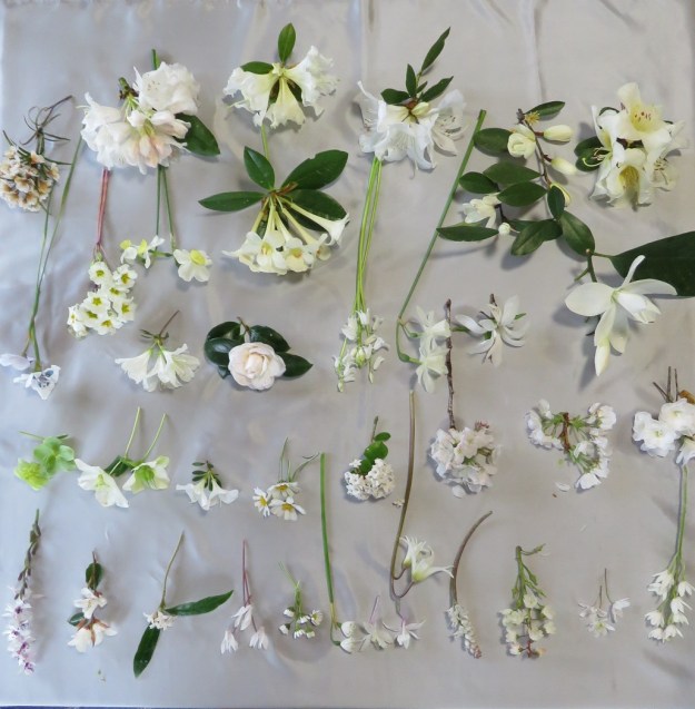 I felt my all white flower lay was not really festive enough for the day before Christmas so I added just a touch of red. Meri Kirihimete, as many (but not all) of us now say in Aotearoa. May your festive season be full of love and laughs, or at least tranquillity.